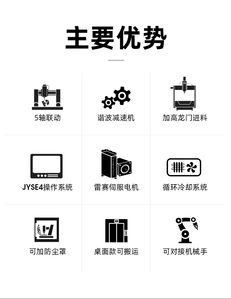 晶研桌面款搖籃五軸精雕機(jī),采用昌盛2.2KW水冷主軸,內(nèi)循環(huán)水冷系統(tǒng),干凈環(huán)保。配置C7級滾珠絲桿和H級直線導(dǎo)軌,運(yùn)行順滑。雷賽伺服電機(jī)驅(qū)動,AC兩軸諧波減速機(jī),高精度加工。JYSE4脫機(jī)電控系統(tǒng),支持5軸聯(lián)動和自動化加工。大行程,A軸-5°~100°,C軸360°,五軸300×300×300mm加工尺寸,滿足復(fù)雜鏤空及多種產(chǎn)品加工需求。