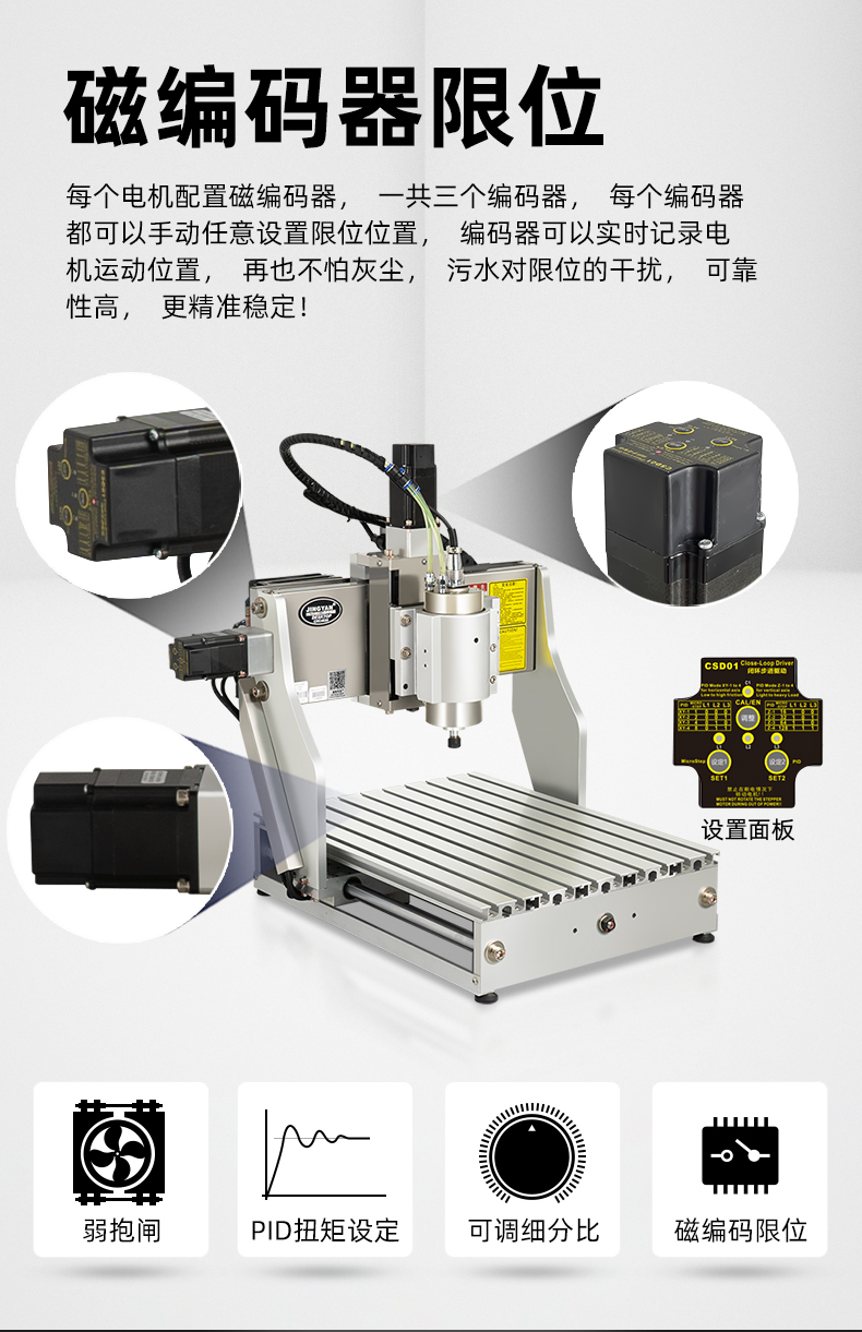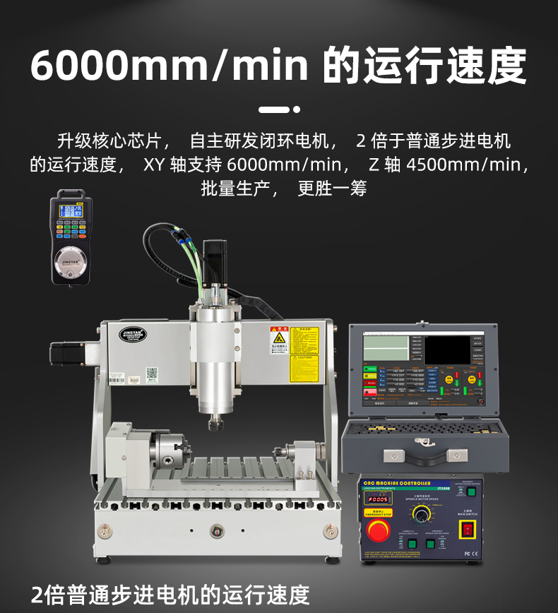 晶研M系列桌面雕刻機(jī)提供多種功率選擇,適應(yīng)不同硬度材料加工需求。其高精度編碼限位系統(tǒng)、高速閉環(huán)電機(jī)和智能驅(qū)動卡,確保了加工的精度、速度和節(jié)能效果。此外,晶智牛云系統(tǒng)和手機(jī)小程序?yàn)橛脩籼峁┝吮憬莸慕虒W(xué)和售后服務(wù),使其成為工業(yè)應(yīng)用的理想選擇。