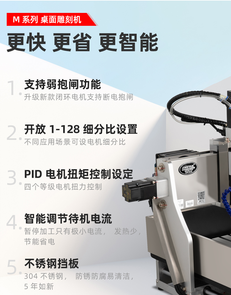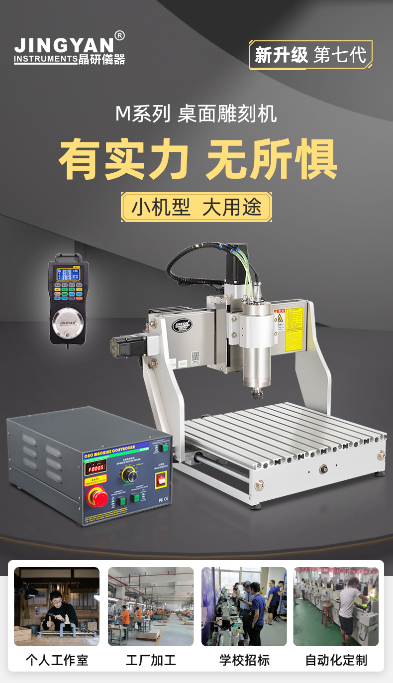 晶研M系列桌面雕刻機提供多種功率選擇,適應(yīng)不同硬度材料加工需求。其高精度編碼限位系統(tǒng)、高速閉環(huán)電機和智能驅(qū)動卡,確保了加工的精度、速度和節(jié)能效果。此外,晶智牛云系統(tǒng)和手機小程序為用戶提供了便捷的教學和售后服務(wù),使其成為工業(yè)應(yīng)用的理想選擇。