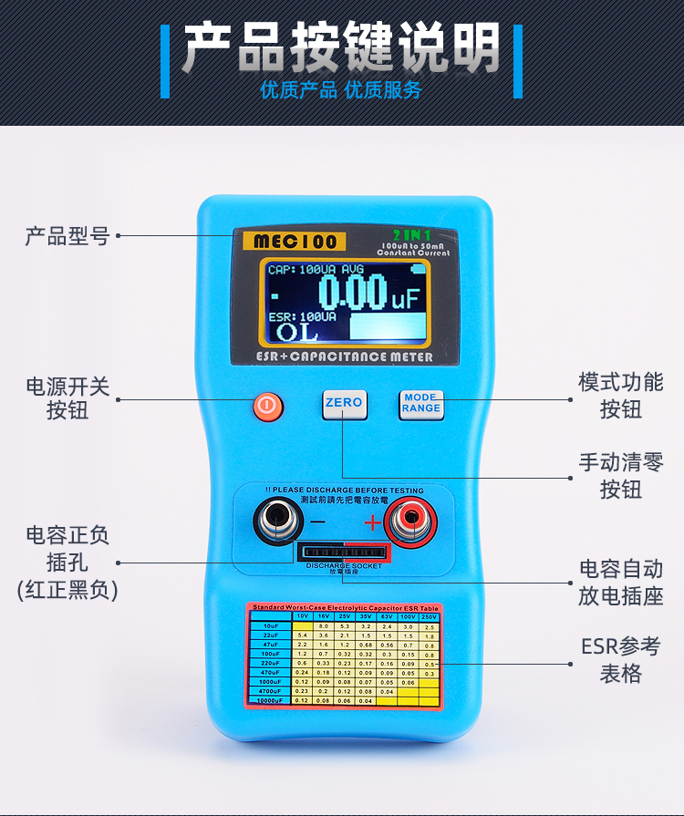 廠家直銷,高精度電容分析儀MEC-100,可測(cè)電容容值,和ESR內(nèi)阻,維修利器,測(cè)試電容大小,電容內(nèi)阻,判斷電容好壞,方便直接,再也不用為分不清電容好壞而煩惱了,外貿(mào)熱銷,高精度,穩(wěn)定可靠,維修,研發(fā)必備利器!