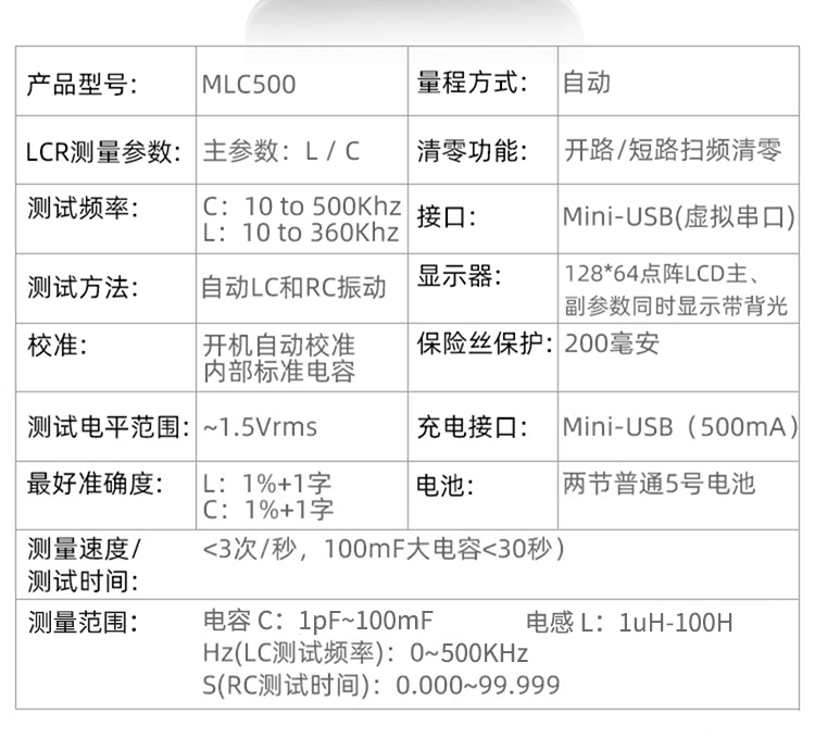 廠家直銷(xiāo),高精度電容電感表MLC500,高頻測(cè)試,電容500kHz,電感360kHz,性價(jià)比超值,對(duì)于家電維修,DIY愛(ài)好設(shè)計(jì),小元件測(cè)試都是非常不錯(cuò)的,測(cè)試速度快,精度靈敏,絕對(duì)是您的不錯(cuò)之選!另配上位機(jī)軟件,連接電腦,便于專(zhuān)業(yè)工程人員對(duì)數(shù)據(jù)研究分析,物超所值啦!您還在等什么?!