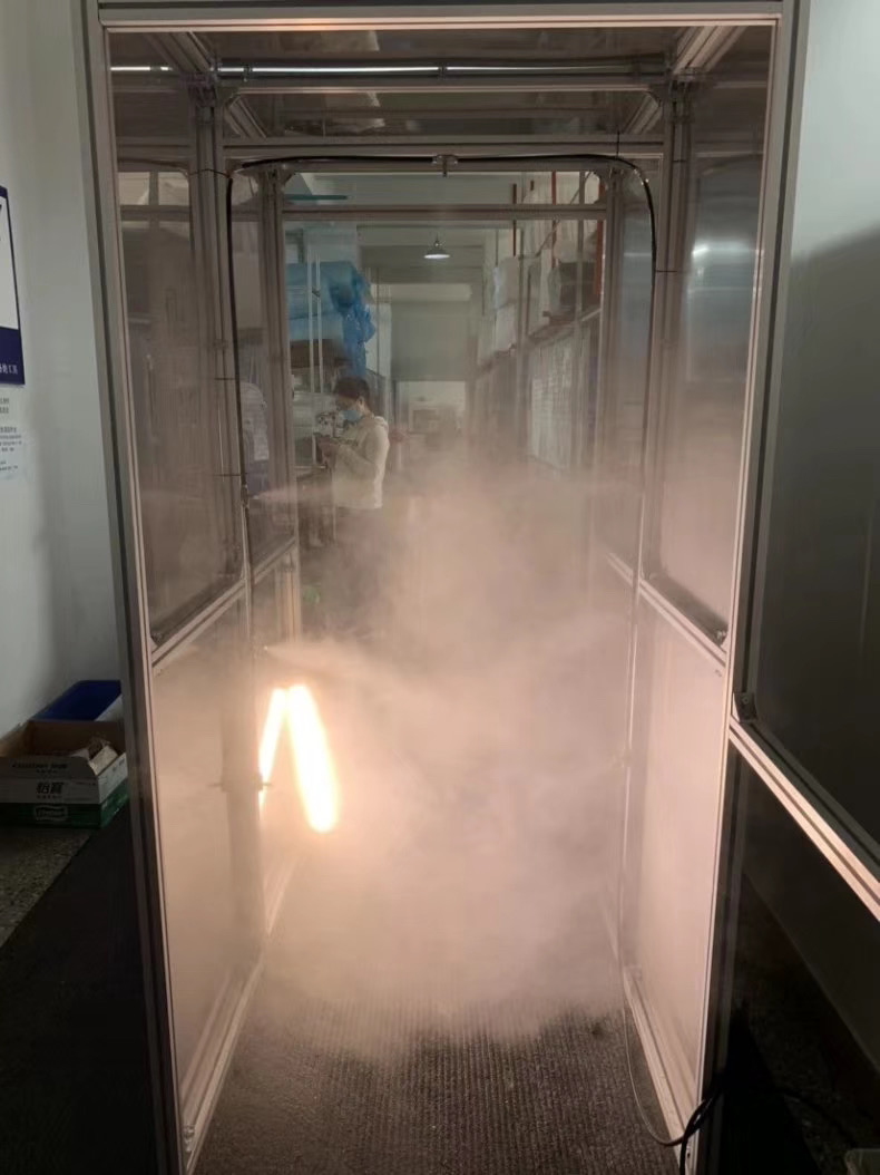 自動消毒通道內(nèi)置7個可調(diào)角度霧化噴頭,可全方位,多角度,無死角全身消毒,水珠能到直徑10um,有效覆蓋衣服和人體肌膚上古,噴灑時間能調(diào)節(jié)1到20秒,一般預設時間是3秒,之后便定時停止。